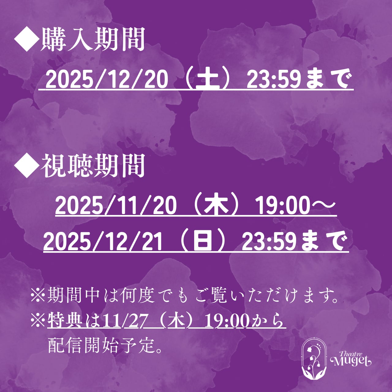 ・撮影事故などにより、予定通り配信をお届けすることが出来なかった場合のみ、払い戻し対応をさせていただきます。
